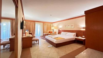 - Deluxe Room – комфортни и стилни, с голямо двойно легло, баня с душ кабина, балкон с градинска или частична морска гледка