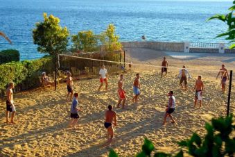 Собствен пясъчен плаж с коралов риф за гмуркане. 3 открити плувни басейна: 1 басейн от 800 кв.м (отопляем през зимата) и 2 басейна от 600 кв.м.