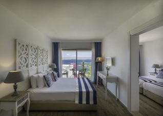 Хотелът се състои от 341 стаи: 217 клубни стаи (от които 81 с гледка градина и 136 гледка море), 58 клубни семейни стаи с гледка градина, 28 делукс семейни стаи и 38 делукс стаи. Всички стаи са оборудвани с: баня с душ, сешоар, климатик, телевизор, телефон, сет за кафе и чай (безплатен), минибар (безплатен, зарежда се веднъж при пристигане с безалкохолни напитки и вода, през останалите дни - веднъж на ден вода и газирана вода), сейф (платено), смяна на спалното бельо – 3 пъти седмично.