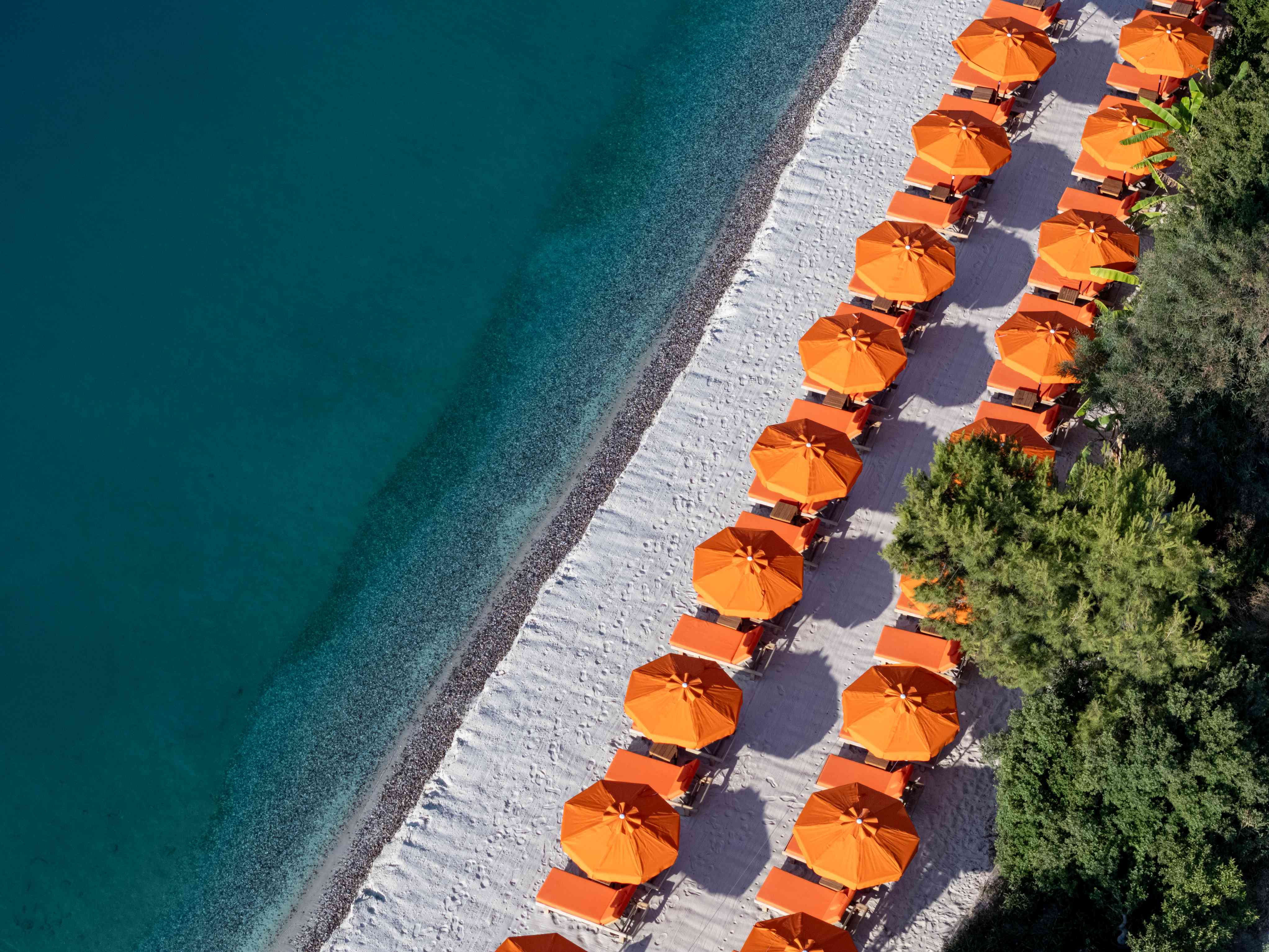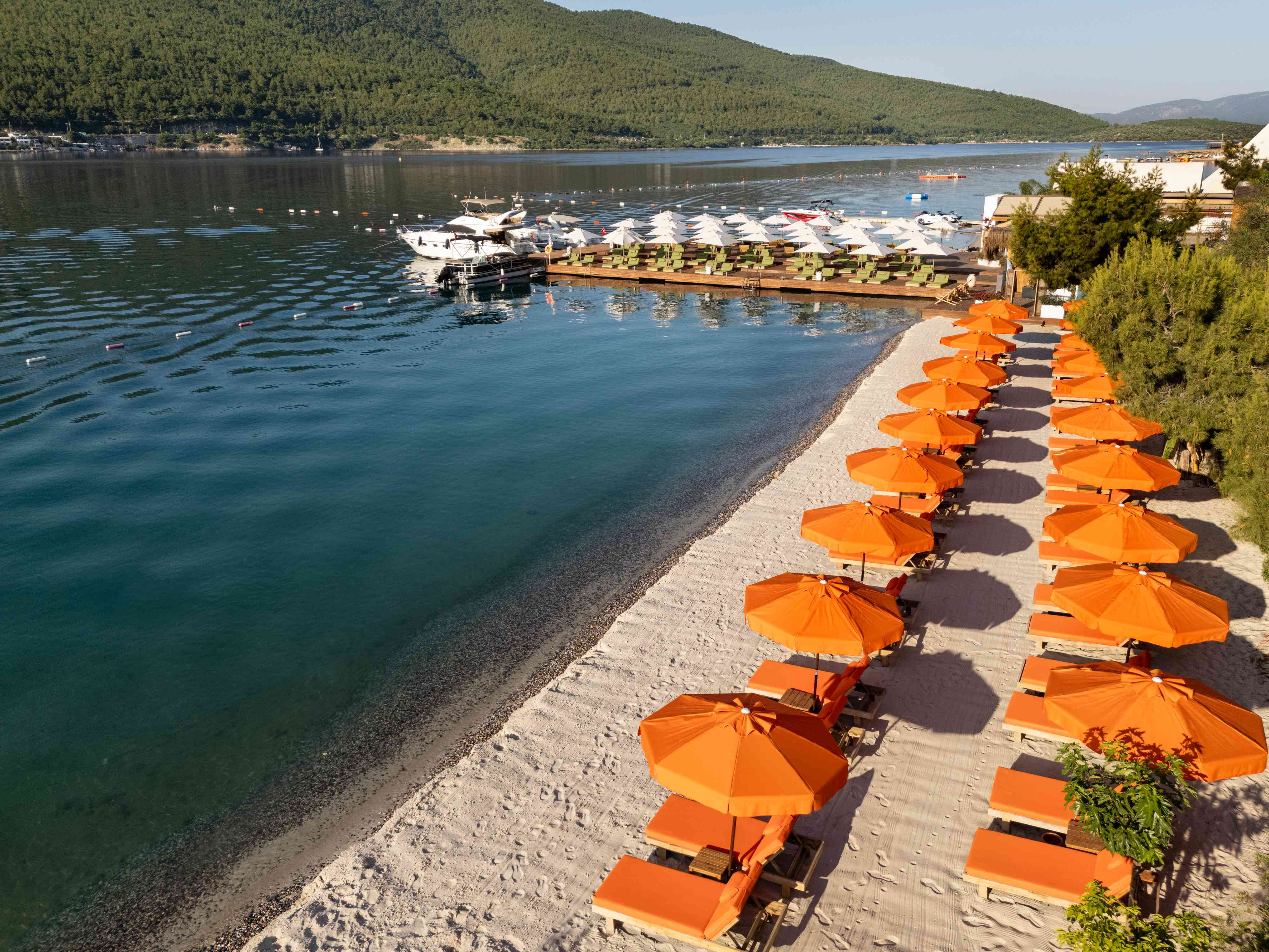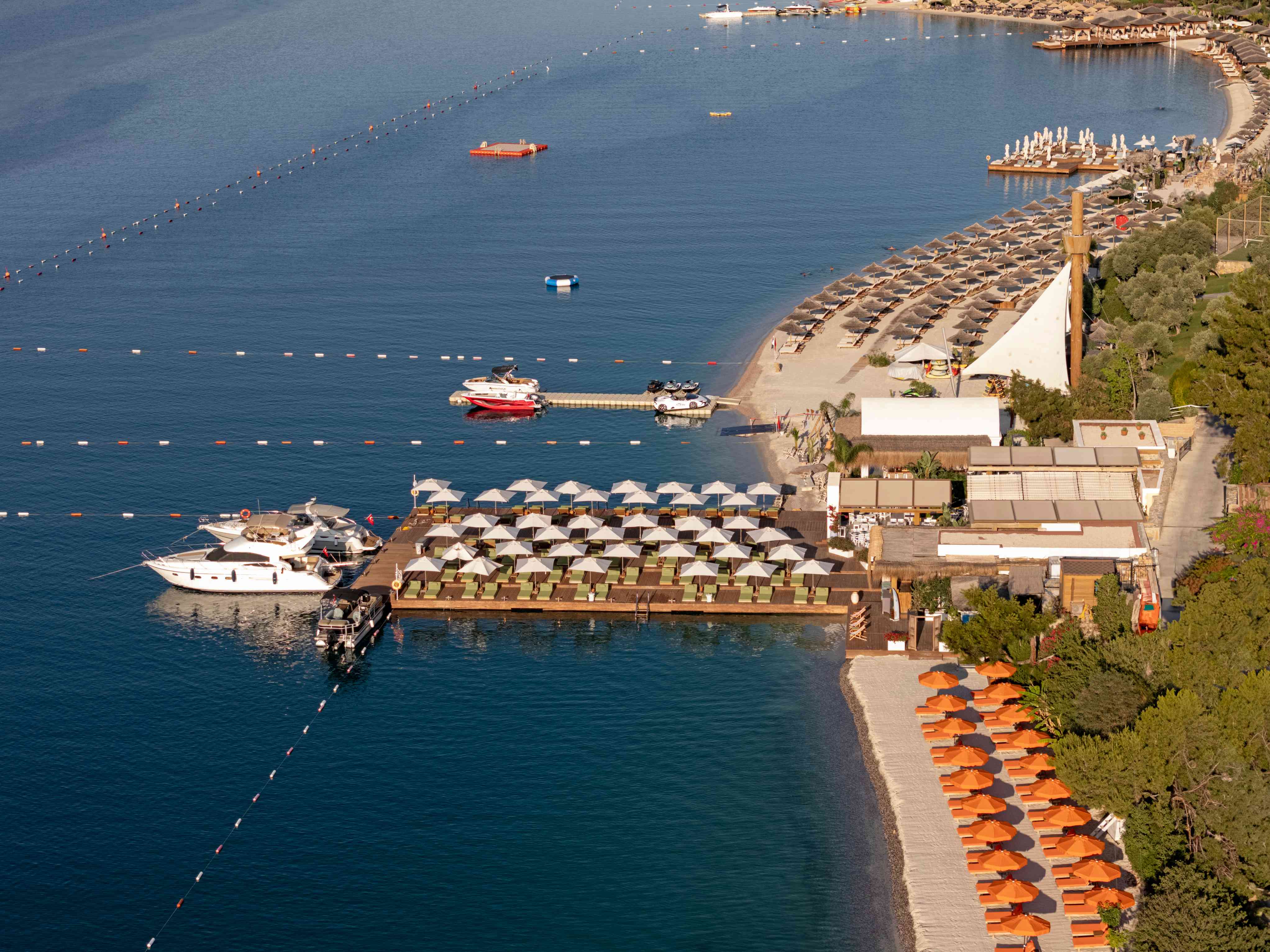 Собствен пясъчен плаж с бял пясък и дължина от 350 метра, притежател на "Син флаг" - чадъри и шезлонги на плажа и при басейна безплатно, плажни кърпи - безплатно.