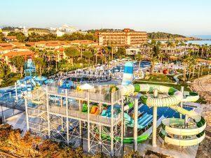 Основен ресторант, 3 а-ла-карт ресторанта (турски, италиански, средиземноморски - с предварителна резервация, съгласно концепцията на хотела), 5 бара, 3 открити и 1 закрит басейн, водни пързалки, амфитеатър, дискотека, СПА център, магазини, 3 конферентни зали, паркинг.