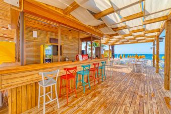 Собствен, на 500 м от хотела, пясъчно - чакълест. До плажа се стига посредством подземен тунел, предлага се и безплатен шатъл бус. Чадъри, шезлонги и плажни кърпи на плажа и при басейна – безплатно.