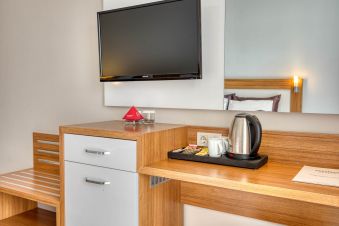 Всички стаи са оборудвани с климатик, телевизор, телефон, баня с душ, сешоар, сет за чай/кафе, минибар (безплатен), сейф (платен), балкон.