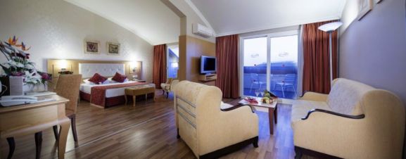 Хотелът се намира на брега на морето, на 20 км от Алания и 120 км от летище Анталия.