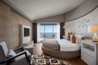 Собствен пясъчен плаж със зона за възрастни. Между хотела и плажа има пешеходна алея. Дължината на плажа - 120 м.Шезлонги, чадъри, матраци, плажни кърпи - безплатно, душ, спасители на плажа, кабини за смяна, бар на плажа, вход към морето - пясък..