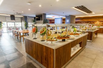 На разположение на гостите са основен ресторант и а`ла карт ресторант на плажа. В основния ресторант се предлагат турски и интернационални ястия, на които гостите могат да се насладят на открито и на закрито. Освежаващи напитки се предлагат в лоби бар, бар при басейна и бар на плажа.