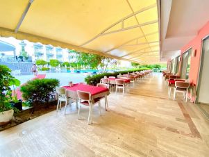 Хотелът е разположен на собствен пясъчно-чакълест плаж. На разположение на гостите има три открити плувни басейна, един детски басейн. Чадъри, шезлонги и плажни кърпи на басейна и на плажа - безплатно.