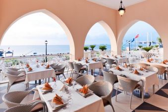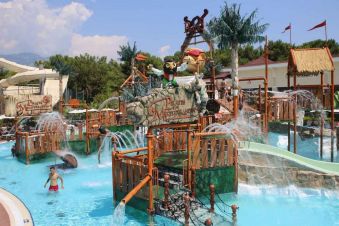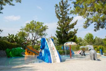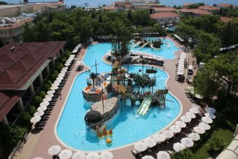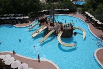 Широкият пясъчно-чакълест плаж на хотела е дълъг около 500 метра. На разположение на гостите са 11 открити басейна, аквапарк (25 пързалки, 16 от тях за деца).