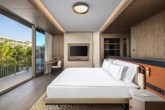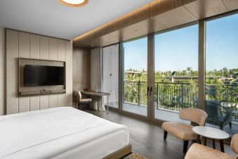 Bayou Villa 1 Bedroom - С площ от 246 м2, вила с единична спалня се състои от вътрешна площ от 109 м2 с всекидневна, спалня, 2 бани и частна градина от 137 м2, включваща отопляем частен басейн от 25 м² с морска вода, тераса с шезлонг, маса за хранене и градински мебели и място за слънчеви бани и почивка. Излиза се и към басейна лагуна с прясна вода.
