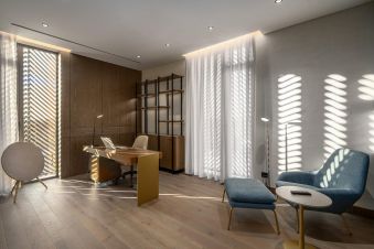 Bayou Villa 4 Bedrooms - С площ от 983 м2, вила с 4 спални, на 3 етажа и се състои от закрита площ от 579 м2 с всекидневна, спалня, съблекалня, баня, тоалетна, кухня и асансьор на първия етаж, а на горния етаж 3 спални, 3 бани, съблекалня и работно помещение. Частната градина с площ от 404 м2 разполага с отопляем частен басейн от 51 м2 с морска вода, тераса с шезлонг, маса за хранене и градински мебели, както и място за слънчеви бани и почивка. Отваря се и към басейна лагуна с прясна вода. Във всекидневната на вилата има пиано. Вилата разполага също и с билярдна маса, турска баня/парна баня, сауна, джакузи, стая за масаж с 2 легла, фитнес, 55” телевизор, минибар и градина в сутерена на вилата, която улавя слънчевите лъчи.