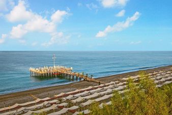 Плаж: Частен пясъчно-каменист плаж на 30 метра от хотела (първа линия). Чадъри, шезлонги, плажни павилиони, матраци и кърпи се предоставят безплатно.