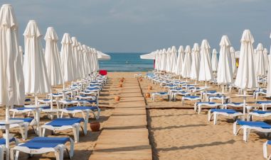 Плаж: Собствен с фин пясък на около 800 м с осигурен безплатен шатъл до него. Плавен заход към морето. Разполага с бар на плажа и снек бар. Шезлонги, чадъри – безпалтни.