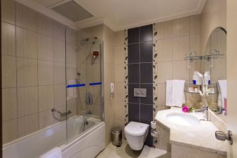 В стаите: Хотелът се състои от 4 сгради, блокове- A, B, C и D. Блоковете A, B, C ( построени през 2007 г. ) са пететажни и имат асансьор. Блок D ( построен през 2011 г. ) е двуетажен и е без асансьор. Разполага с общо 208 стаи: 91 стандартни стаи, стилно и модерно обзаведени, разполага с климатик, сейф под наем, душ, сешоар, тоалетна, балкон, минибар, LCD телевизор (сателит), телефон и ламиниран паркет. ; 35 фамилни стаи - Стаята разполага с родителска спалня и допълнителна детска спалня, която е разделена с междинна врата. Стаите са обзаведени в модерен стил и разполагат с климатик, сейф под наем, душ, сешоар, тоалетна, балкон, минибар, LCD телевизор (сателит), телефон и ламиниран паркет; Фамилна стая с двуетажно легло - В стаята има допълнително двуетажно легло и разполагат с климатик, сейф под наем, душ, сешоар, тоалетна, балкон, минибар, LCD телевизор (сателит), телефон и ламиниран паркет.
