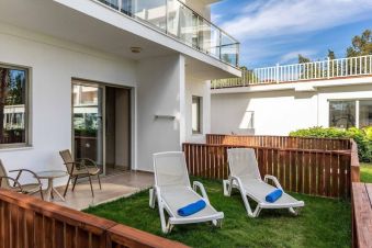 Собствен пясъчно-чакълест плаж. Бар на плажа - безплатно. На плажа и на басейна чадъри, шезлонги, шалтета и хавлии - безплатно.
