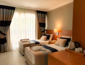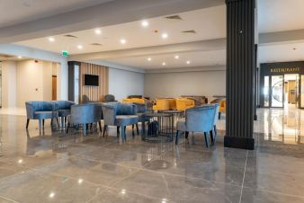 На територията на хотела: Основен ресторант, а - ла - карт ресторант, 4 бара, открит и закрит басейн, водни пързалки, фитнес център, WiFi- безплатен на рецепция, ресторант и на плажа.