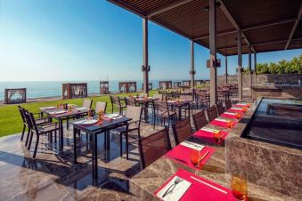 Концепцията включва: закуска - различни тематични сервировки: диетичен бюфет, руски бюфет; сокове от портокал, грейпфрут, ябълка и моркови, асортимент от крем чай; обяд, вечеря в основен ресторант или на плажа, 24 часа а-ла-карт меню, закуски, асортимент от сладкиши, шоколатиер, пресни плодове и сладкиши в определени часове, местни и вносни алкохолни и безалкохолни напитки. 3 а-ла-карт ресторанта - международен, турски и рибен (безплатно), 4 а ла карт ресторанта — месо, тепаняки, гастро, ресторант за здравословна храна (срещу заплащане, при резервация), ресторант Emerald (безплатна закуска и обяд за Royal Beach Villa, Presidential Villa, с резервация, за Suite, Maxx Laguna Villa платено). Румсървисът е на разположение 24 часа в денонощието срещу заплащане.