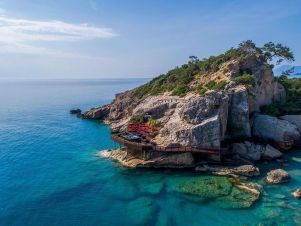 Плаж: На територията на хотела (100 м от основната сграда) се намира частен плаж с малки камъчета. Два частни 200-метрови залива, 400-метров частен плаж, 30-метров плаж за деца. Шезлонги, чадъри, матраци, плажни кърпи са безплатни. Входът към морето е малко камъче. Кабини за преобличане, душ, спасител на плажа, бар. Частните павилиони са платени. Обслужване на хладни кърпи и бърсане на слънчеви очила на плажа (безплатно).