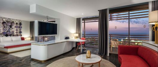 В стаите: Хотелът разполага с общо 579 стаи - 551 Superior Room Sea / Land View (32м2), 18 Family Suite Sea / Land View (56м2), 8 Deluxe Suite Sea View (60м2), 2 King Suite Sea View (120м2). Всички стаи са оборудвани с климатик, телевизор, телефон, баня с душ, сешоар, сет за кафе/чай, минибар, сейф, балкон.
