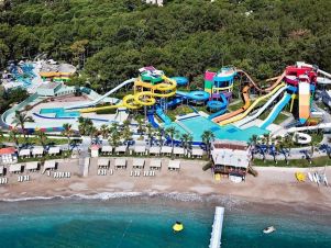 Разположение: Хотелът се намира на 50 км. от летище Анталия, на 25 км. от центъра на Анталия, в района на Кемер, на брега на морето. Построен през 2005 г. с обща площ от 250 000 м2, последно реновиран през 2012 г.