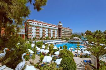 Хотелът се намира на 12км. от центъра на Алания и на 110км. от летището в Анталия, на брега на морето. Посторен е през 1990г. с обща площ 55000м2., реновиран през 2013г.