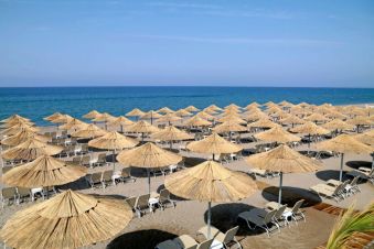 Частният пясъчно-каменист плаж на хотела е само на 60 метра. Това е първата брегова линия. Чадъри, шезлонги, матраци и кърпи се предоставят безплатно. Плажните павилиони се предлагат срещу допълнително заплащане. Дължината на плажната ивица е 100 метра.