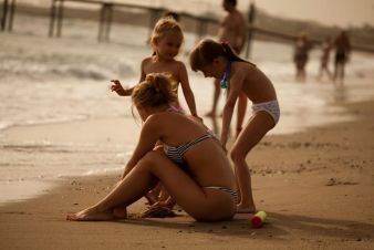 Собствен - пясъчно-каменист. Чадъри и шезлонги на плажа и при басейна - безплатно. Плажни кърпи - срещу депозит. Препоръчваме носенето на аква обувки.