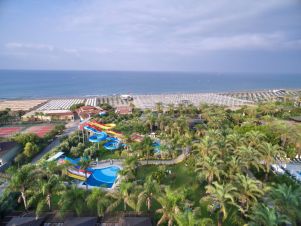 Разположение: Хотелът се намира на 60 км. от летище Анталия, на 9 км от Манавгат и на 2 км от античния град Сиде, на брега на морето. Построен през 2006 г. върху територия с обща площ 60000 м², реновиран през 2018 г.
