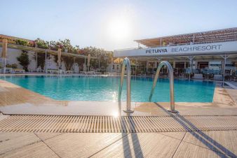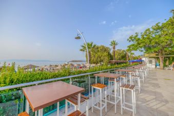Плаж: Собствен пясъчно-чакълест плаж непосредствено пред хотела. Чадъри, шезлонги, матраци на плажа и при басейна - безплатно. Плажни кърпи - срещу депозит.