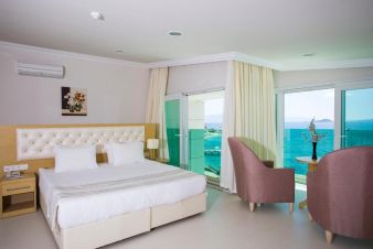 В стаите: хотелът разполага с 79 стаи: стандартни стаи ( 20 кв.м) - без балкон, суити ( 40 кв.м). На разположение на гостите на хотела в стаите има климатик, сешоар, ортопедични легла, Wifi, набор за приготвяне на чай/кафе, сейф, мини бар, душ кабина, тоалетни принадлежности. Стаите се почистват всеки ден, спалното бельо и кърпите се сменят 3 пъти в седмицата.
