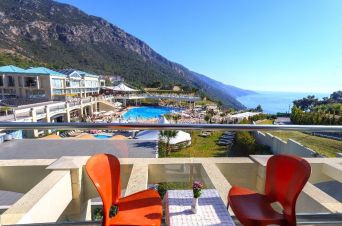Хотелът е разположен в живописна планинска местност, от която се разкрива невероятна панорамна гледка към залива Олюдениз на Средиземно море.