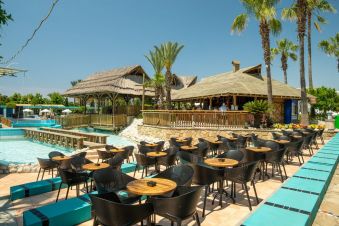 Собствен пясъчно-чакълест плаж на 430 м от хотела, 2 открити 1 детски басейн и пързалки за деца и възрастни.