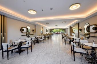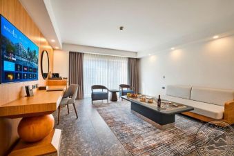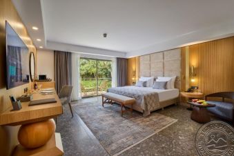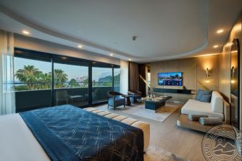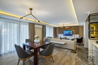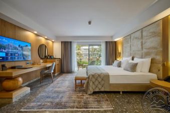12 двустайни Junior Club Suite (с гледка градина, 1 гостна, 1 спалня, 1 баня с вана, 1 тераса, индивидуален климатик, макс. 3+1 чов., 45 м2);