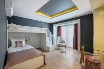 24 тристайни Family Club Suite (с гледка градина, 1 гостна,2 спални, 1 баня с вана, 1 тераса, индивидуален климатик, макс. 5+1 чов., 55 - 60 м2);