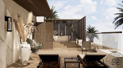 7 Executive Villa (с гледка градина, 1 гостна, 3 спални, на всеки етаж баня с вана, 1 балкон, индивидуален климатик във всяка стая,отделен басейн за гостите във вилите, макс. 6+1 чов., 100 м2).
