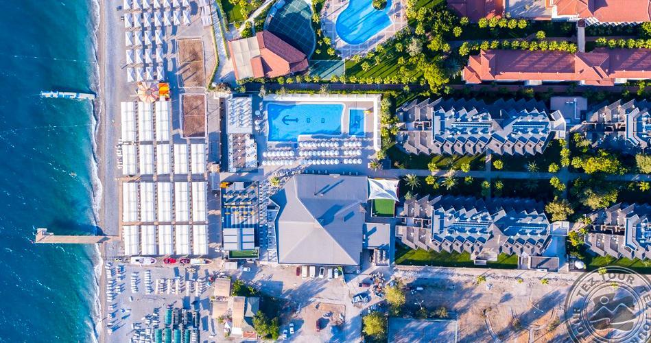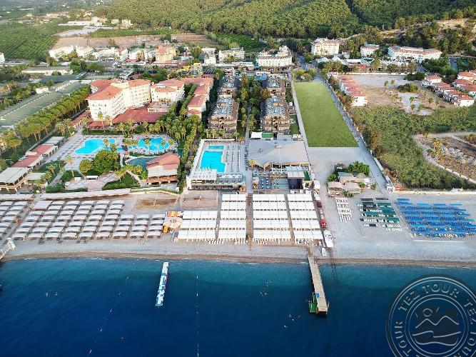 Хотелът се намира на 65 км от летището на Анталия, на 50 км от Анталия, на 7 км от центъра на Кемер, в село Кириш, на брега на морето.Построен през 1997 г. с обща площ от 21 000 м2 - последната реставрация е извършена през 2020 г. Хотелът се състои от 4-етажни сгради.