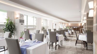 Основен ресторант, 2 а-ла-карт ресторанта (срещу заплащане), 3 бара, 1 открит басейн (600м²) , амфитеатър, магазини, СПА център, 5 конферентни зали, паркинг. Безплатни услуги: Сауна, турска баня, джакузи, парна баня, фитнес, аеробика, зумба, пилатес, дартс, тай-чи, бочиа, плажен волейбол, тенис корт, тенис на маса, анимация, музика на живо, караоке, тематични партита, WI-FI интернет (на лоби). Платени услуги: СПА център, масаж, пилинг, фризьор, магазини, химическо чистене, оборудване за тенис корт, осветление на тенис корта, безмоторни и моторни водни спортове. Плаж: Собствен, пясъчен удостоен със сертификат "Син флаг" .Чадъри и шезлонги на плажа и при басейна – безплатно, плажни кърпи - безплатно.