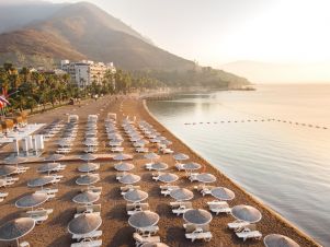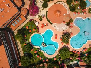 Основен ресторант, 3 а-ла-карт ресторанта (италиански, рибен, азиатски - срещу заплащане), 4 бара, сладкарница, 2 открити басейна (1333м²) , 1 закрит басейн (80м² ), СПА център , магазини, 6 конферентни зали , 2 тенис корта с изкуствено покритие, паркинг. За децата: детски бюфет, детски басейн (65м²) , детска площадка, мини клуб (4–12 г.), тиин клуб (12-16 г.), мини диско, детска стая за игри Безплатни услуги: Сауна, турска баня, фитнес, аеробика, плажен волейбол, баскетбол, тенис корт, тенис на маса, дартс, мини футбол, боча, телевизионна зала, анимационна програма, музика на живо, WI-FI интернет. Платени услуги: СПА център, масаж, пилинг, фризьор, лекар, детегледачка, химическо чистене, интернет кафе, видео игри , оборудване за тенис корт, осветление за тенис корта, уроци по тенис, билярд, водни спортове, велосипеди под наем, курс по гмуркане Настаняване с домашни любимци: до 5 кг. ПЛАЖ: Собствен, пясъчен удостоен със сертификат "Син флаг" . Чадъри и шезлонги на плажа и при басейна – безплатно, плажни кърпи - безплатно. Шатри на плажа (платено).