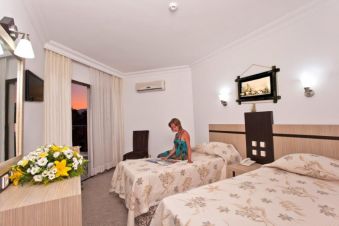 Местоположение: Хотелът е на 125 км от летище Анталия, само на 1 км от Алания и на 100 метра от другата страна на пътя от плажа.