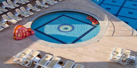 68 двустайни family rooms (две спални с врата, в сатята на родителите няма прозорец, 1 тоалетна, вид на басейн, макс. 4 чов., 48 м2);