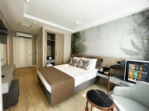 Стаи: Хотелът се сътои от една основна 4-етажна сграда, оборудвана с асансьори и една допълнителна 3-етажна сграда (без асансьор) и общо 129 стаи. Всички стаи са оборудвани с балкон (без икономичнитестаи), електронна система за заключване, климатик, LCD телевизор, минибар (Вода, минерална вода, кола и др. при пристигане. - Ежедневно зареждане с вода през следващите дни), сет за приготвяне на кафе и чай, сейф, телефон, WiFi интернет, баня с душ, тоалетни принадлежности, сешоар.