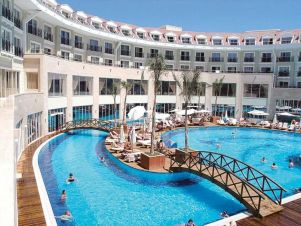 Основен ресторант, 4 бара, 1 открит (само през летния период) и 1 закрит басейн (само през зимния период), водни пързалки, магазини, SPA център, 2 конферентни зали. За децата: Мини клуб (4-8 г.), анимация. Безплатни услуги: Турска баня, сауна, фитнес, дартс, тенис корт, аеробика, анимация, интернет (в лоби). Платени услуги: Масаж, център за красота, фризьор, магазини, билярд, интернет кафе, видеоигри, химическо чистене, лекар, детегледачка, водни спортове, наем на топки и ракети за тенис, осветление за тенис кортовете. ПЛАЖ: Собствен, пясъчен, на 400 м. от хотела. Чадъри и шезлонги на плажа – безплатно.