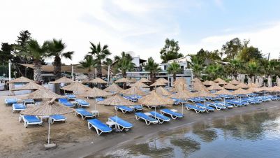 - На 150 м от морето, собствен плаж, пясъчeн. Чадъри, шезлонги, кърпи – безплатно.