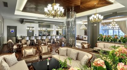 База на изхранване-HiGH CLASS.концепцията на хотела освен 24 богато изхранване, включва и много марков алкохол също безплатно. коняк -2 вида, водка, текила, джин по 3 вида,ром,ликьор по 5 вида,кампари и уиски по 7 вида/. 1 Основен ресторант/предлага се и детска кухня и диетично меню/закрита и открита част,снек ресторант около басейните, 5 алакарт ресторанта-азиатски, турски, италиански, рибен и мексикански. Посещението на всеки един от тях по веднъж –безплатно за седмица, с предварителна резервация.