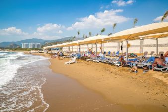 Собствен пясъчен плаж.Чадъри,шезлонги ,матраци на плажа и край басейните. безплатно. Голям дъгообразен пирс. Плажни кърпи-безплатно.