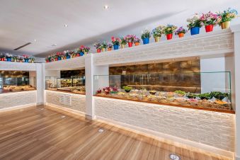 Основен ресторант, а - ла - карт ресторант (срещу заплащане). Хотела разполага с 4 бара, 2 открити басейна WI – FI. За децата: анимация.