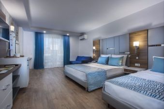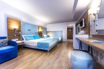 Хотелът разполага с 682 стаи. Всички стаи са оборудвани с климатик, сателитна телевизия, телефон, баня с душ, сешоар, мини бар (платен), сейф (безплатен), балкон. Почистване на стаите – всеки ден. Основен ресторант, а - ла - карт ресторант (италиански и грил, с предварителна резервация), 8 бара, сладкарница, 8 басейна, аквапарк – Eftalia Island и собствен аквапарк със 7 пързалки, магазини, SPA център, паркинг.