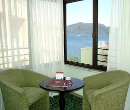 На 95 км. от летището в гр. Даламан, 2 км от центъра на Мармарис. На 25м. от морето. Градски плаж;