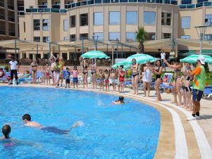 Безплатни са турска баня, сауна, фитнес зала, аеробика, водна аеробика, баскетбол, тенис корт с бетонно покритие (денем), тенис на маса, дартс, анимационна програма, безжичен интернет (на лоби)