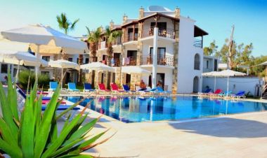 на 3 км. от Бодрум в центъра на Гюмбет, на брега на морето и 38 км. от летище Бодрум