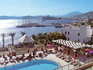 Хотелът е разположен на 35 км от летището на г. Бодрум, в центъра на града, на брега на морето.